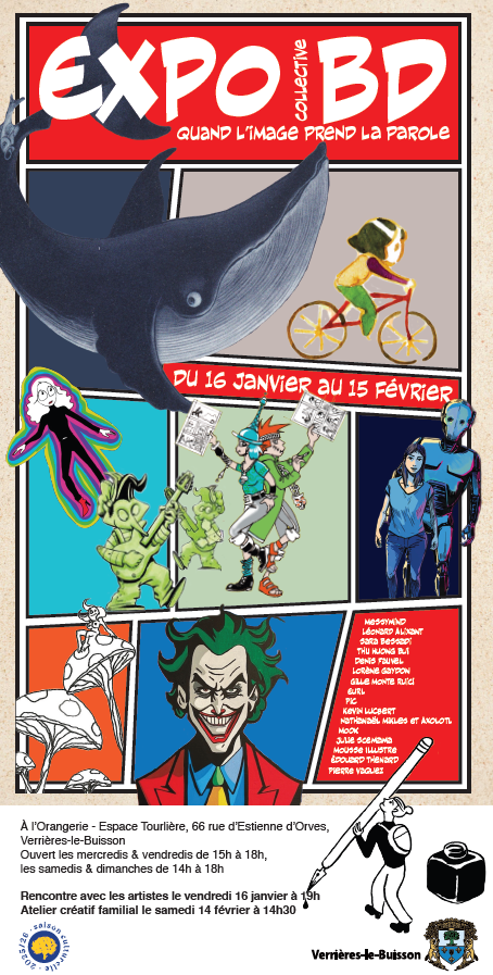 Vous retrouverez ici tous ces thèmes : l’humour avec N. Mikles et Axolotl, l’onirisme avec P. Vaquez, des sujets entre enfance et problématiques mondiales avec S. Bessadi, ou politiques avec Thu Huong Bui… Vous découvrirez les acryliques Pop culture explosant de couleurs de L. Alixant ; les oeuvres de K. Lucbert réalisées au stylo-bille Bic ; le roman graphique de J. Scemama ; les planches d’Éd. Thenard… et les dessins du Verriérois D. Fauvel.